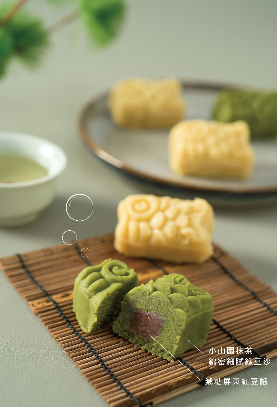 綿密滑順的綠豆沙,加上減糖的屏東紅豆餡做搭配